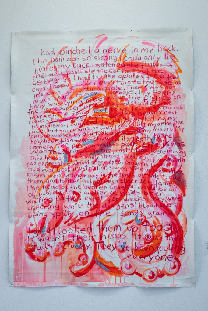 I painted my first mural at Nau Bostik in Barcelona. It shows fishes and crabs and mussels at a market stand. I also wrote two short stories about seafood. One is about childhood memories about eating mussels. The other one is about having wild fantasies about shrimps whilst lying on my back and being on opiates (due to a pinched nerve in my back).